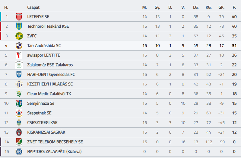 TARR Andráshida SC: Varga Kolos, Németh Benedek, Szigeti István, Szabó László Roland, Ádám Martin, Ebedli Botond, Ábrahám Gergő, Pálfi Nimród, Papp Dávid, Králik Noel, Dalla Gergő